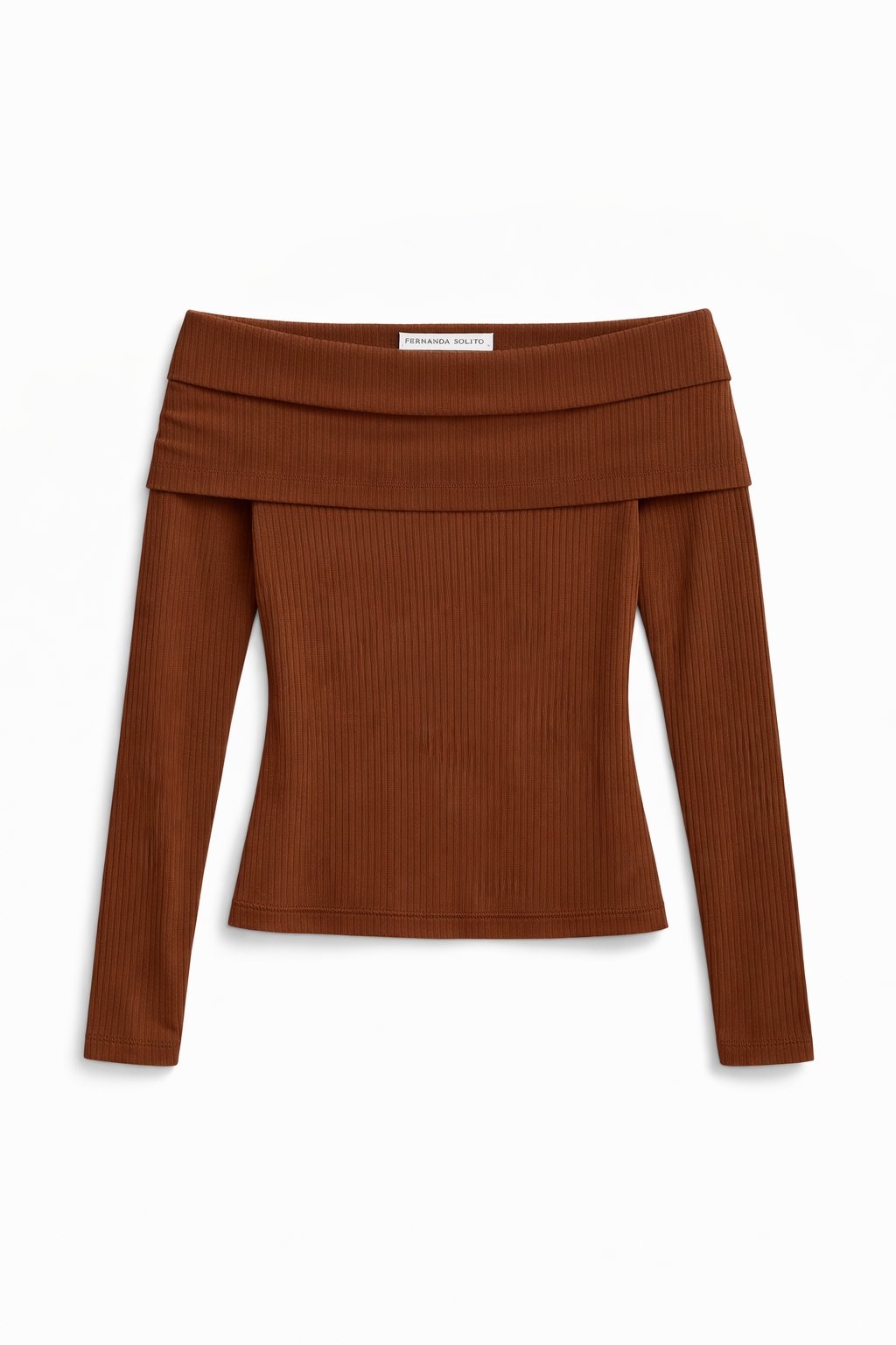 Blusa ombro a ombro canelada marrom, manga longa, feminina, moderna e poderosa!